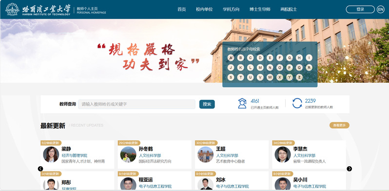 哈工大教师个人主页是学校为全体教职工打造的个性化学术展示与交流平台,依托学校官网技术架构,支持 “一校三区”(哈尔滨、深圳、威海)教师自主搭建专属学术空间。平台以 “学术性、专业性、便捷性” 为核心特质,整合个人基本信息、教学成果、科研项目、学术论文、专利成果、荣誉奖励等内容模块,支持自定义排版与多媒体展示(如科研团队照片、教学视频、学术报告 PPT),既是教师个人学术品牌的 “线上名片”,也是校内外学术交流、师生互动的重要载体。